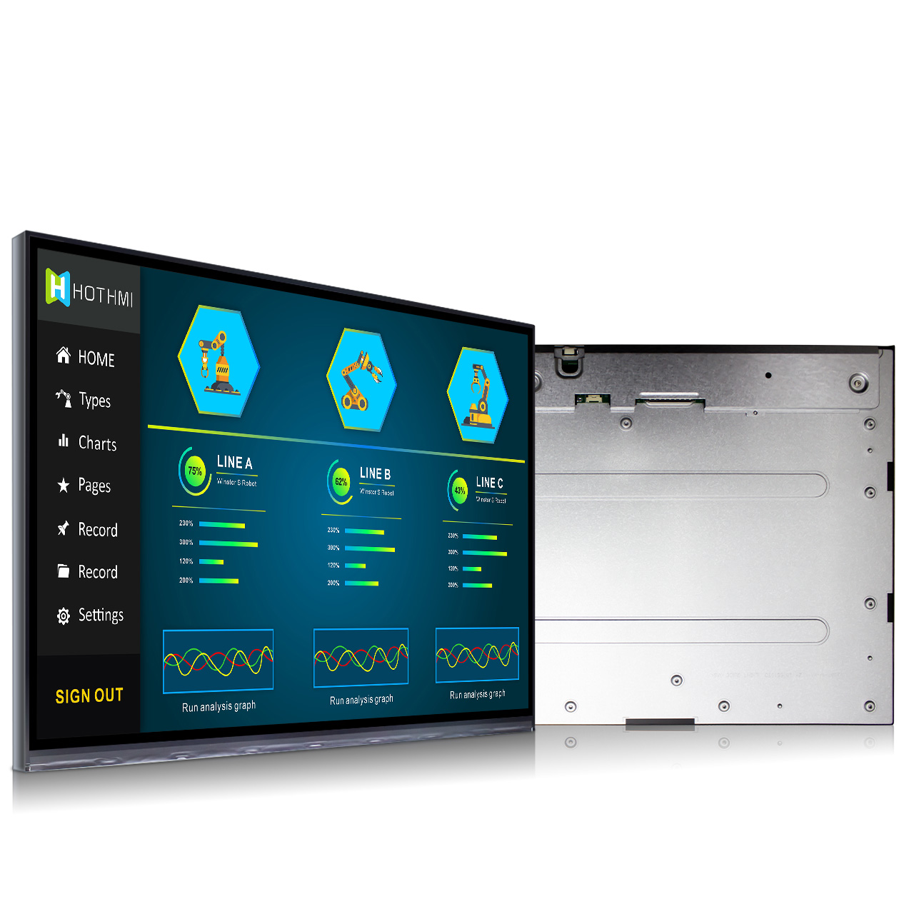 鑒于這款型號的寬廣顯示區(qū)域以及良好的性能,使之在工業(yè)控制環(huán)境中頗受歡迎。這款型號目前是不帶外殼的,同尺寸型號我們還有帶外殼的版本。用戶也可以根據(jù)實際使用需求,對外殼進行定制化。